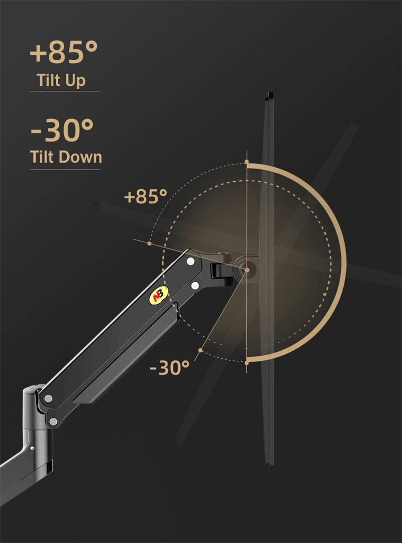 Tilt angle +85° to -30°